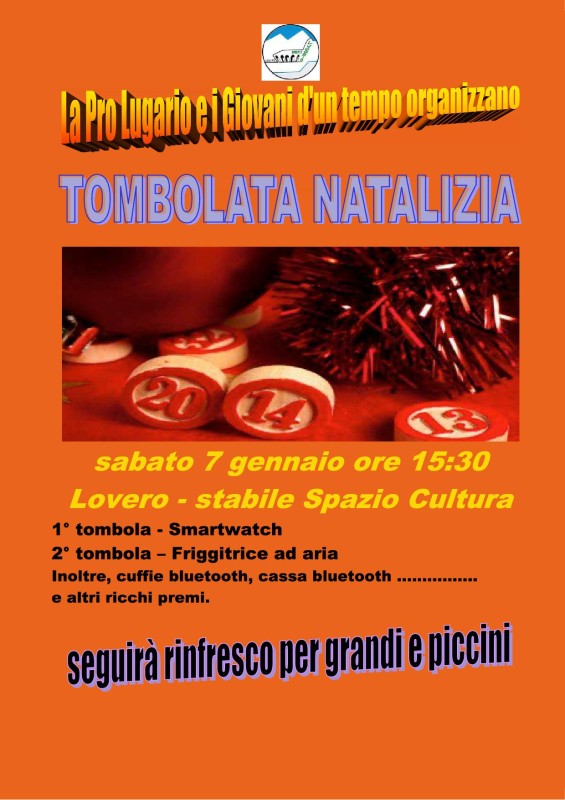 La Prolugario, in collaborazione con i Giovani d'un tempo, vi ricorda che sabato 7 gennaio presso lo stabile "Spazio Cultura" dalle ore 15:30.